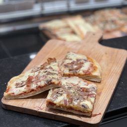 Ham & Mozzarella Pizza. A reheatable pizza, produced daily in the traditional Bella Italia oven.