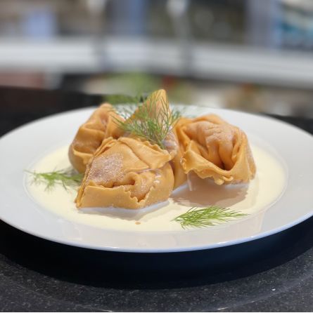 Fresh ravioli prepared in the Bella Italia workshops daily. The dough is mixed with smoked salmon and stuffed with fresh salmon and ricotta. Delicious!Do you want to stock up on good things with your Salmon Ravioli ±500g, and have your home delivered to the best craftsmen in Brussels? Here is the list of our businesses: