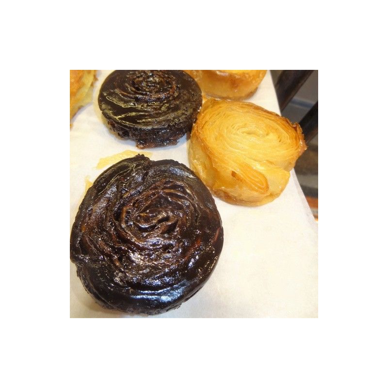 Typical pastry from my home town (Finistère, Brittany). Kouign amann is a salted butter flaky cake with sugar. It smells and tastes like salted butter caramel.It should be eaten warm! Reheat it in the oven at 200° for 2/3 minutes or in the microwave for 20/30 seconds or on a low heat in a frying pan, turning it over +- every 20 seconds until it is lukewarm.Do you want to stock up on good things with your Plain Kouign Amann - 70g, and have your home delivered to the best craftsmen in Brussels? Here is the list of our businesses: