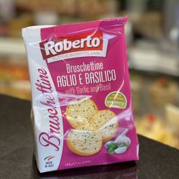Ideal for the aperitif, a garlic and basil bruschetta.