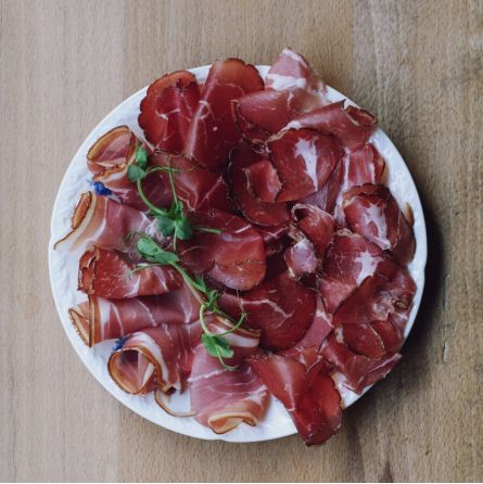 Un joli assortiment de charcuteries sélectionné par La Fruitière selon leur inspiration. 100g par portion (1 personne!). La photo est l'illustration de l'un de leur assortiment précédent!