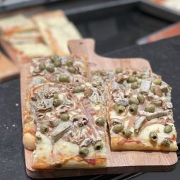 4 Seasons Pizza (Ham, Mozzarella, Mushrooms, Olives, Artichokes). A reheatable pizza, produced daily in the traditional Bella Italia oven.Do you want to stock up on good things with your Piece of Pizza Quatro Stagione, and have your home delivered to the best craftsmen in Brussels? Here is the list of our businesses: