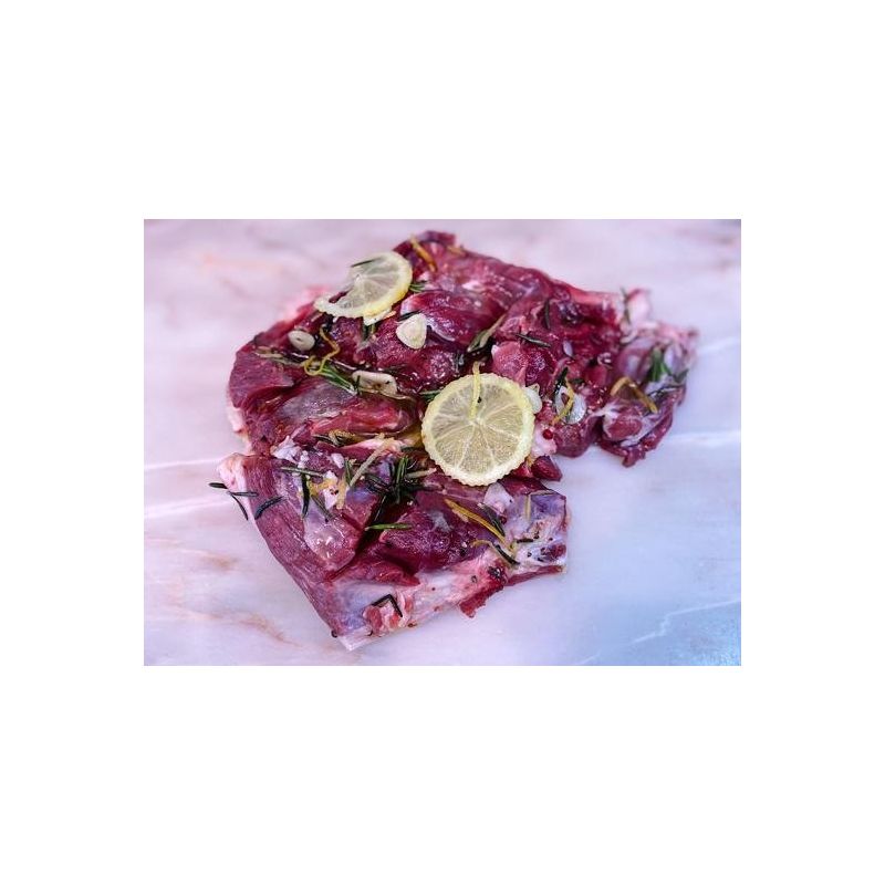 Tranches de gigot d'agneau marinées au romarin et à l'huile d'olive.