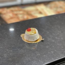 Base de pâte d'amende montée d'une crème onctueuse à la ricotta.