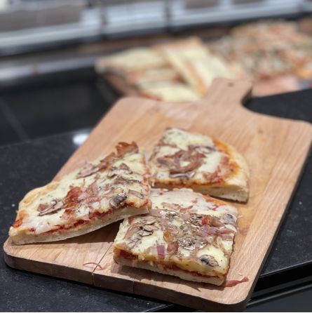 Pizza Jambon Champignon & Mozzarella. Une pizza à réchauffer, produite tous les jours dans le four traditionnel de la Bella Italia.Envie de faire le plein de bonnes choses avec votre Morceau de Pizza Prosciutto e Funghi, et de vous faire livrer à domicile chez les meilleurs artisans de Bruxelles? Voici la liste de nos commerces :