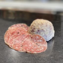 Un petit salami truffé et garni de parmesan: complètement addictif ! En bloc ou en tranche (on vous conseille en tranches très fines ;-) ) voir moins