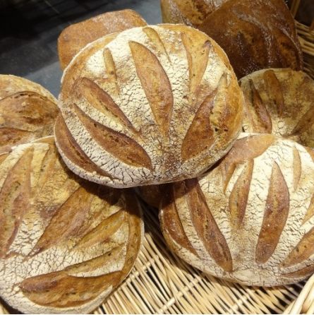 Half-grey bread made with wheat flour crushed on a stone millstone and with natural leaven.It is a bread with a light crumb and a thick, well toasted crust. This is the bread where the leaven is most noticeable.It goes wonderfully with your dishes with sauces, cheeses and cold cuts.Do you want to stock up on good things with your Pain d'Antan - 600g, and have your home delivered to the best craftsmen in Brussels? Here is the list of our businesses: