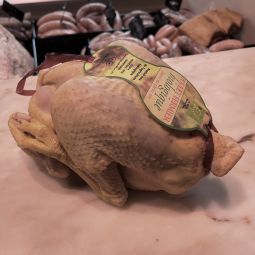 Poulet fermier label rouge, élevé en plein air (avec de l'espace!), de minimum 81 jours et nourri au maïs. Goût légèrement sucré. voir moins