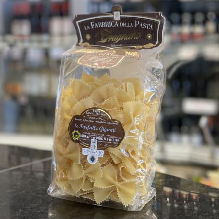 A traditional house that has been making pasta for 4 generations. Their particularity? The use of a bronze mould specially designed for their workshop, which allows a high quality treffilage and a drying at low temperature giving the pasta a beautiful texture that will allow it to hold a perfect cooking and to absorb the sauce. You won't be able to taste anything else!Do you want to stock up on good things with your Farfalle Giganti 500g - La Fabbrica Della Pasta, and have your home delivered to the best craftsmen in Brussels? Here is the list of our businesses: