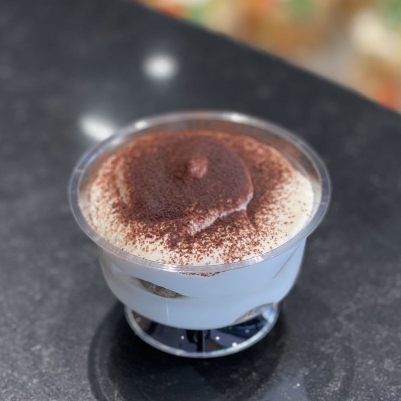 A fresh tiramissu of the day made with Mascarpone, Coffee, Boudoirs.Do you want to stock up on good things with your Classic Tiramisu - 1 portion, and have your home delivered to the best craftsmen in Brussels? Here is the list of our businesses: