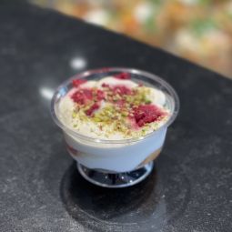 A fresh tiramissu of the day made with Mascarpone and boudoir soaked in pistachio infused milk, with a pistachio and wild berry cream!Do you want to stock up on good things with your Tiramisu Raspberry Pistachio - 1 portion, and have your home delivered to the best craftsmen in Brussels? Here is the list of our businesses: