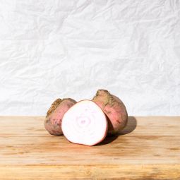With its white and bright pink rings, the Chioggia beetroot can be eaten raw, grated or cooked, usually cold in a salad, or sometimes hot as a garnish for game. Don't hesitate to make a soup, a purée or even crisps with it!Do you want to stock up on good things with your Beet Chioggia - 1pc ±500g, and have your home delivered to the best craftsmen in Brussels? Here is the list of our businesses: