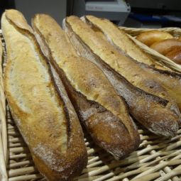 Traditional baguette with CRC (Culture Raisonnée Contrôlée) label, made with natural leaven and baked on stone.