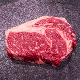 La découpe la plus marbrée et persillée, du boeuf, élevé en plein air et nourri au gazon. Maturée 4 à 6 semaines. Saisissez le sur un grill très chaud, puis terminez la cuisson au four. Laissez reposer la viande dans de l'alluminium après la cuisson pour un aspect tendre et juteux.