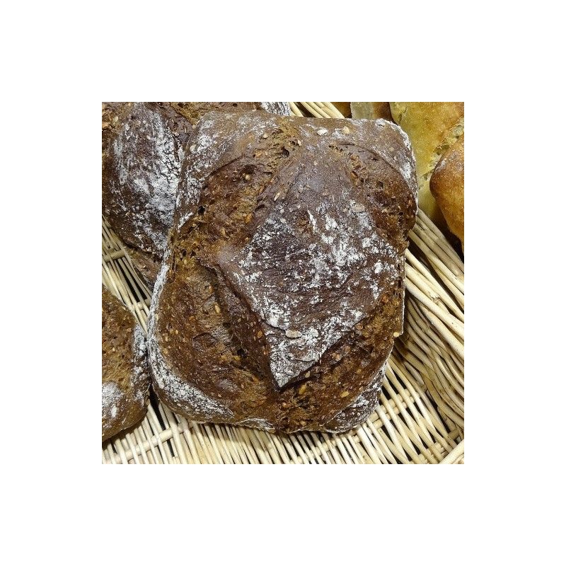 Very dark bread made with 5 flours ( wheat, barley, rye, buckwheat and oats) and 5 seeds (brown flax, yellow flax, sesame, millet and pumpkin seed) with natural sourdough.A very typical and complete bread that will accompany all your meals during the day.Toasted and chicory aromas come out of this bread.Do you want to stock up on good things with your All Black Bread - 600g, and have your home delivered to the best craftsmen in Brussels? Here is the list of our businesses: